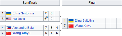 Свитолина в полуфинальной игре справились с Ивой Йович, а Ван одолела Александру Эалу.