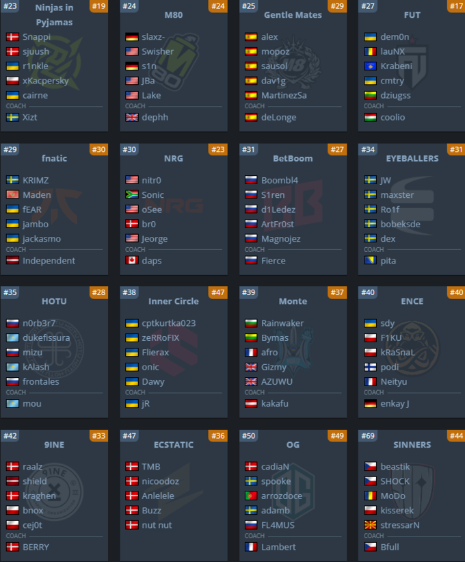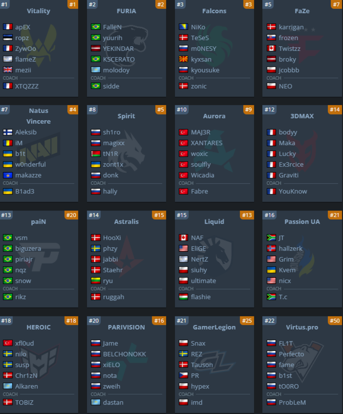 Несмотря на отказ от участия со стороны MOUZ, The MongolZ и G2, турнир соберет немало интересных составов. Aurora, Spirit, paiN, Astralis и Ninjas in Pyjamas приедут на BLAST Bounty с обновленными ростерами и большими амбициями после межсезонных изменений.