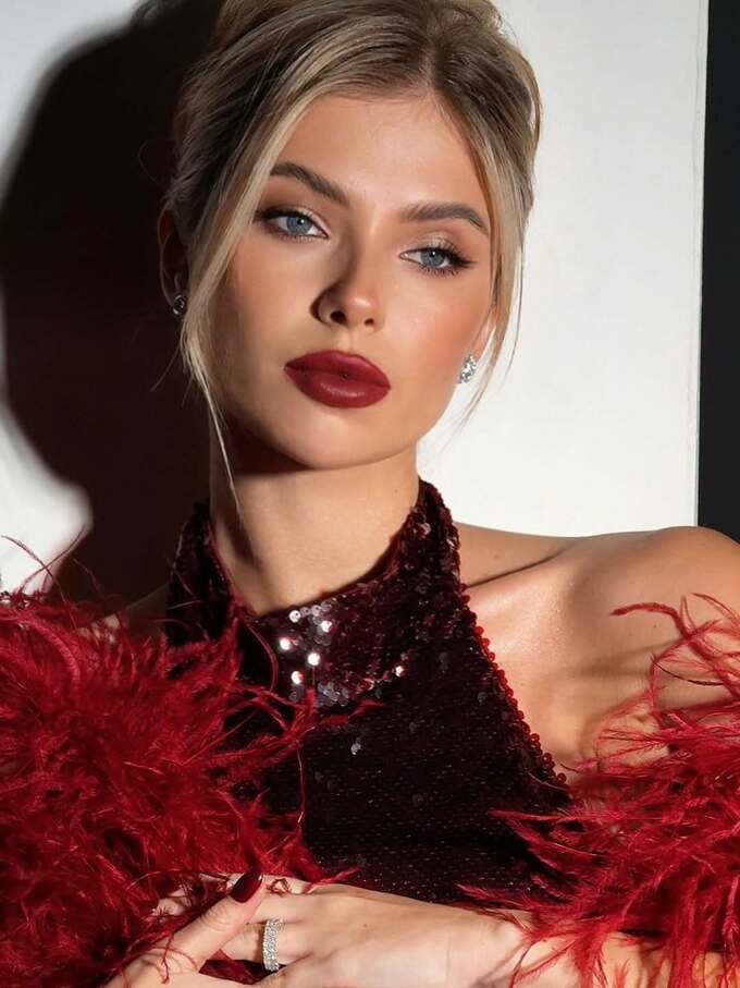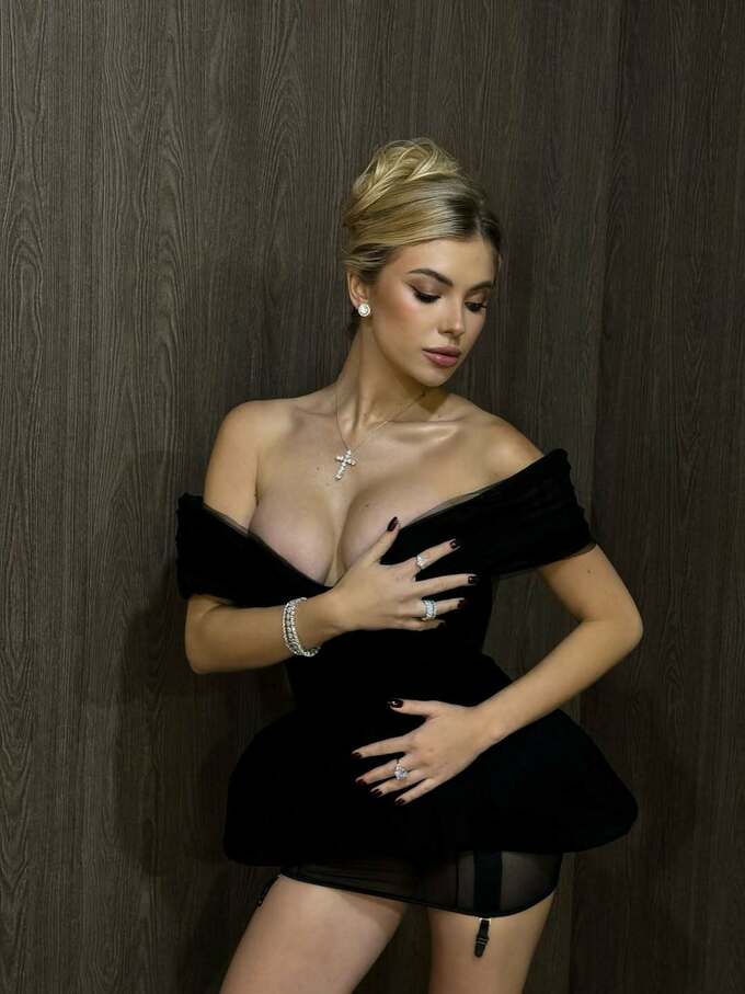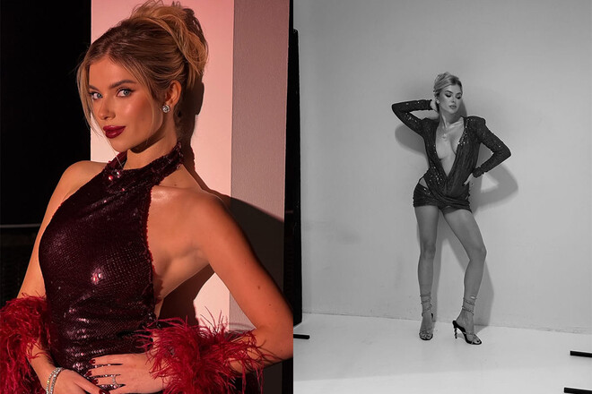 На фото Бондарь позирует в откровенных вечерних образах с акцентом на фигуре, глубоком декольте и обнаженной груди. Образы дополнили яркий макияж, украшения и уверенная подача.