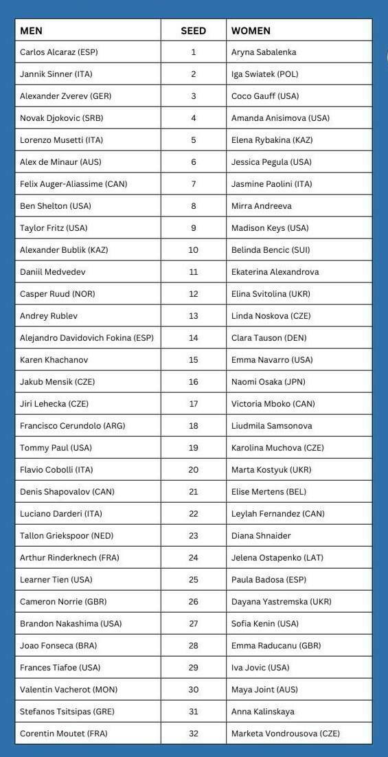 Свитолина, Костюк и Ястремская посеяны под 12-м, 20-м и 26-м номерами соответственно. Всего у мужчины и женщин будет по 32 сеяных игрока.