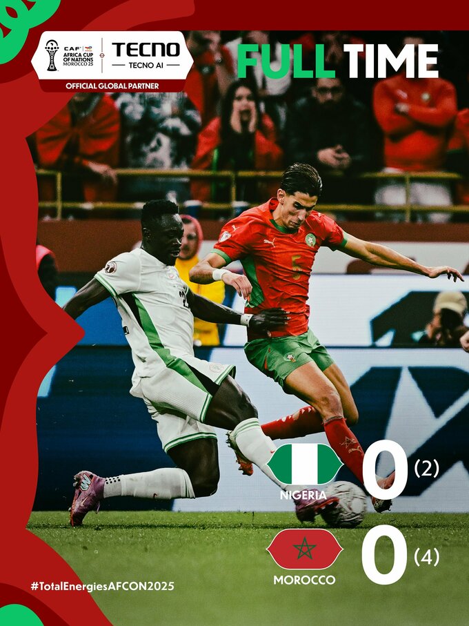 Серия пенальти: Эль-Айнауи (0:1), Онуачу (1:1), Игаманe (не забил), Чуквуезе (не забил), Бен Сегир (1:2), Деле-Баширу (2:2), Хакими (2:3), Ониемаечи (не забил), Ен-Несири (2:4)