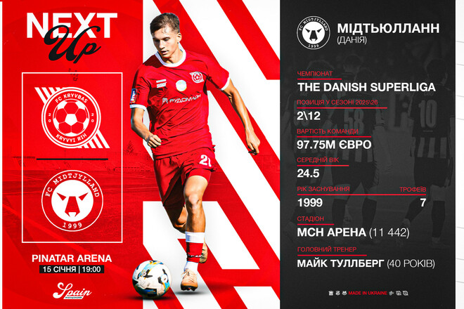 Смотрите 15 января в 19:00 встречаются Кривбасс Кривой Рог и команда Мидтьюлланд из Дании.