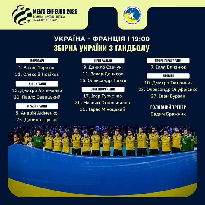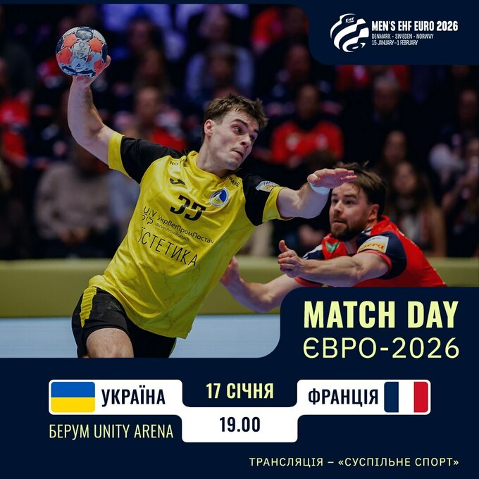17 января в 19:00 мужская сборная Украины по гандболу проводит матч 2-го тура на чемпионате Европы 2026.