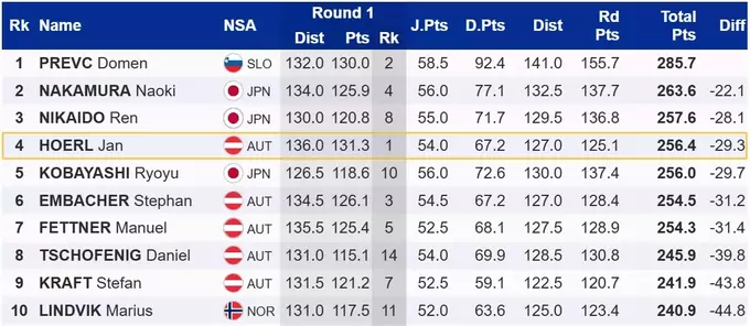 Отрыв Превца от второго места составил 22.1 балла, от третьего – 28.1 балла. Другие места на подиуме заняли японцы Наоки Накамура и Рэн Никайдо.