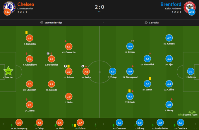 Лучшим игроком встречи был признан вратарь «Челси» Роберт Санчес – его действия оценили в 7.8 балла.