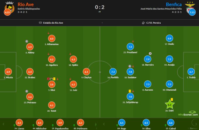 Георгий Судаков также вышел в основе, но был заменен на 90-й минуте. Его перфоманс, в том числе ассист. оценили в 7.8 балла.