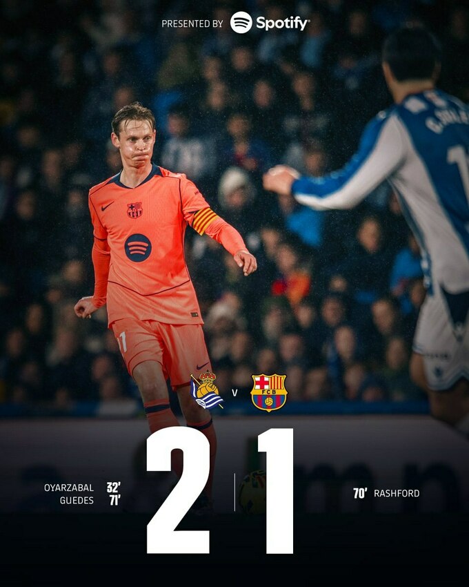 Каталонская Барселона проиграла команде Реал Сосьедад в матче 20-го тура Ла Лиги 2025/26.