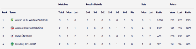 После этой встречи Заверце возглавляет таблицу группы D с тремя победами. Второе место занимает Ассеко Ресовия, третье – Люнебург, а замыкает таблицу – Спортинг.
