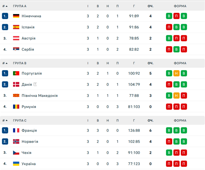 Сенсация произошла в матче группы В. Один из главных претендентов на победу на Евро-2026 сборная Дании со счетом 29:31.