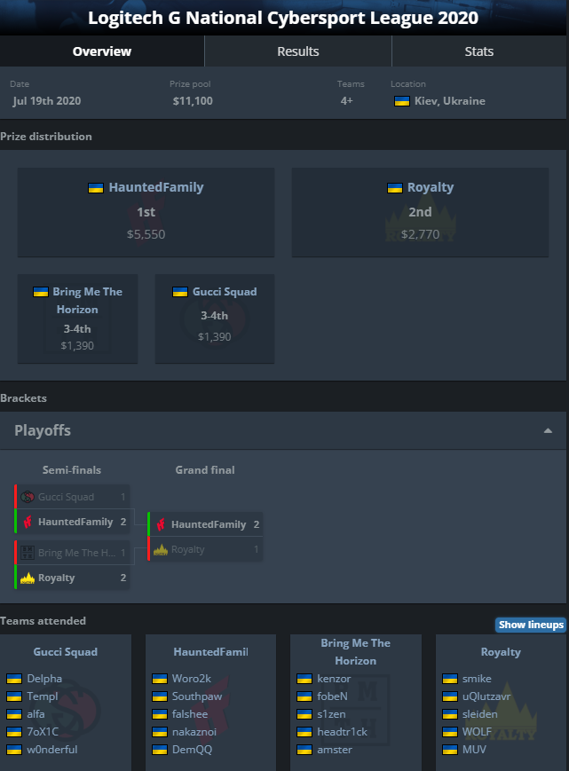 Победителями National Cybersport League 2020 стала команда Haunted Family, за которую выступали DemQQ, Woro2k и их партнеры. Именно этот коллектив впоследствии стал фундаментом для дальнейших успехов игроков, которые позже громко заявили о себе в составе Monte.