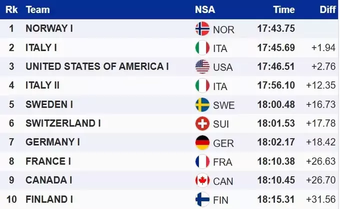 Норвежским лыжникам потребовалось 17 минут 43 секунды, чтобы финишировать первыми в гонке.