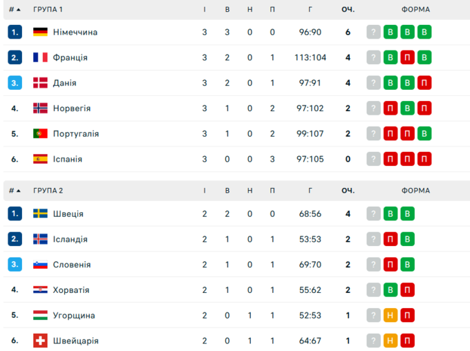Сборная Германии обыграла Норвегию. А в еще одном матче группы сборная Дании со счетом 36:31 победила сборную Испании.