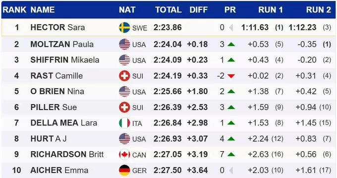 Шведка оставила позади американских горнолыжниц