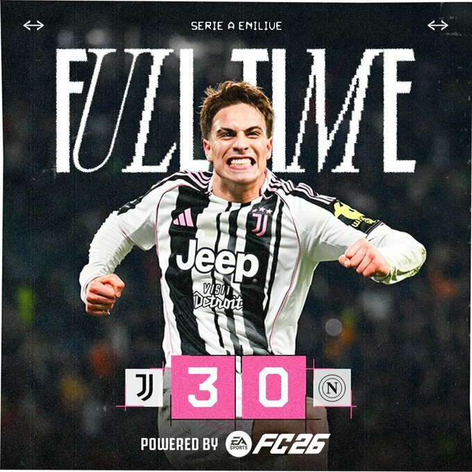 Туринский Ювентус одержал убедительную победу над Наполи в матче 22-го тура Серии А 2025/26.