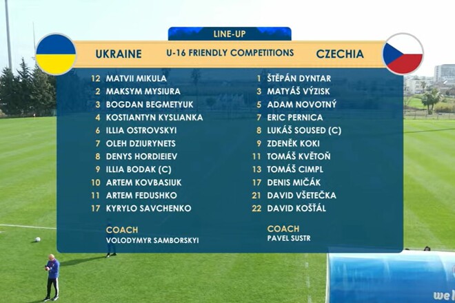 Стал известен стартовый состав сборной Украины U-16 на игру с Чехией U-16