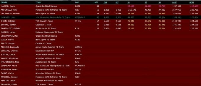 В то же время на таком раннем этапе подготовки результаты круга не имеют решающего значения, ведь команды сосредоточены прежде всего на сборе исходных данных о новых болидах, созданных в соответствии с техническим регламентом-2026.