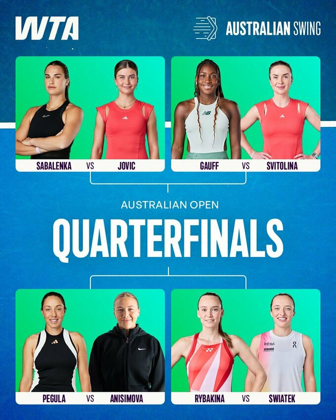 26 января на Открытом чемпионате Австралии 2026 состоялись матчи 1/8 финала в нижней части сетки женского одиночного разряда.