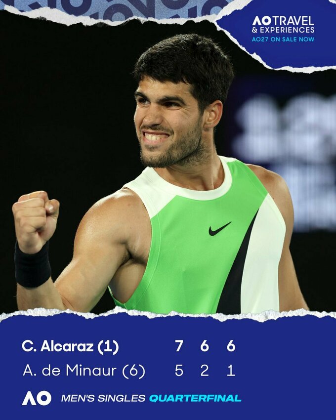 Алькарас впервые в карьере сыграет в полуфинале Australian Open. Всего у Карлоса теперь 10 полуфиналов на турнире Grand Slam – он поборется за восьмой финал мейджора.