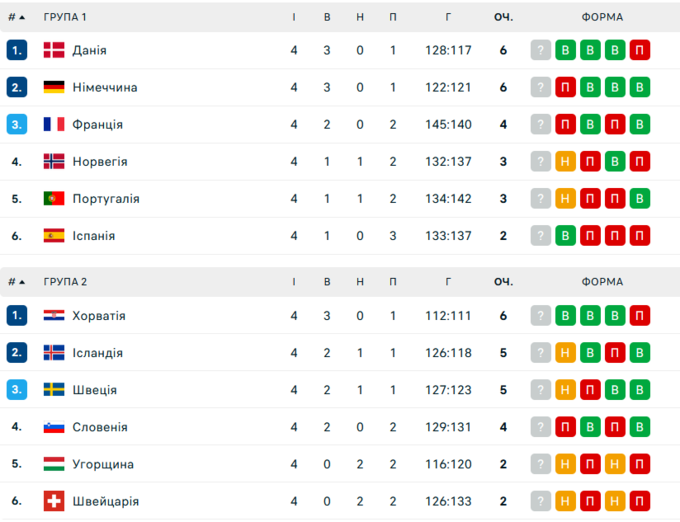 Во вторник, 27 января, на чемпионате Европы по гандболу среди мужских команд прошли три матча. Два из них завершились вничью.