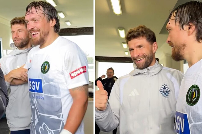 Александр Усик и Томас Мюллер неожиданно встретились на футбольном поле – кадры их встречи быстро разошлись по соцсетям.