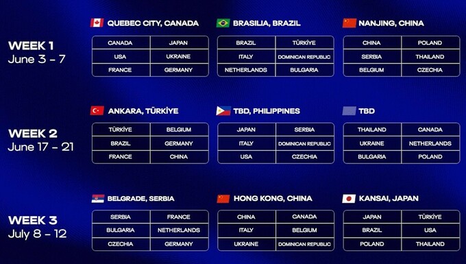Лига наций 2026 по волейболу (женщины). Расписание и группы