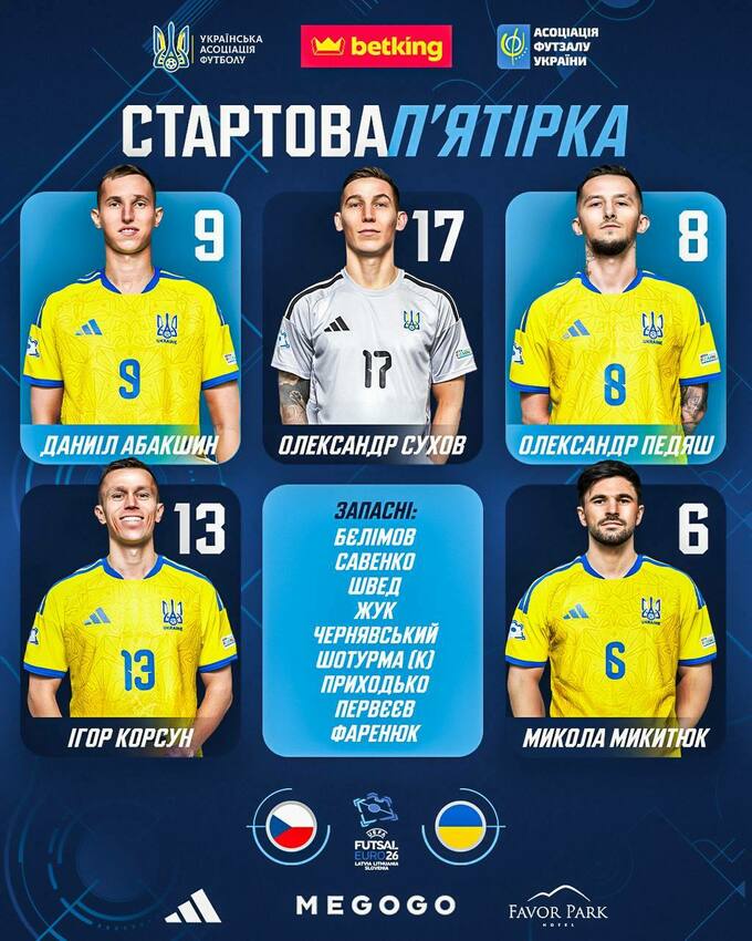 В среду, 28 января, состоится поединок третьего тура чемпионата Европы 2026 по футзалу, в котором встретятся сборные Чехии и Украины.