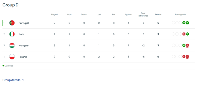 Турнирная таблица группы D: