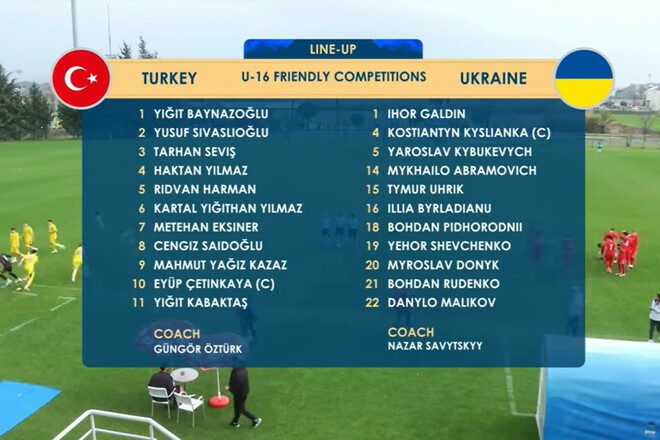 Стартовый состав сборной Украины U-16 на игру с Турцией U-16