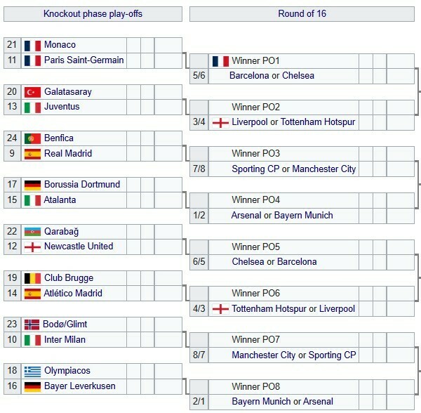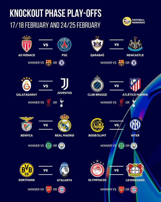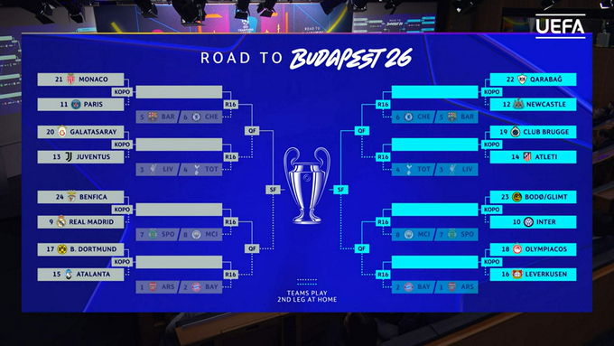 В других парах встретятся: Галатасарай (Турция) – Ювентус (Италия), Боруссия Д (Германия) – Аталанта (Италия), Брюгге (Бельгия) – Атлетико (Испания), Буде-Глимт (Норвегия) – Интер (Италия).