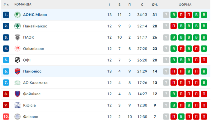 После этой победы Милон набрал 31 очко и единолично лидирует в чемпионате. Паниониос идет седьмым.