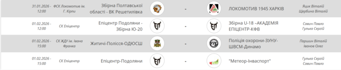 12:00. «Эпицентр сборная Украины U18» – «Эпицентр сборная Украины U20» (Городок, Хмельницкая область), Кубок Украины, 1/4 финала. Городок