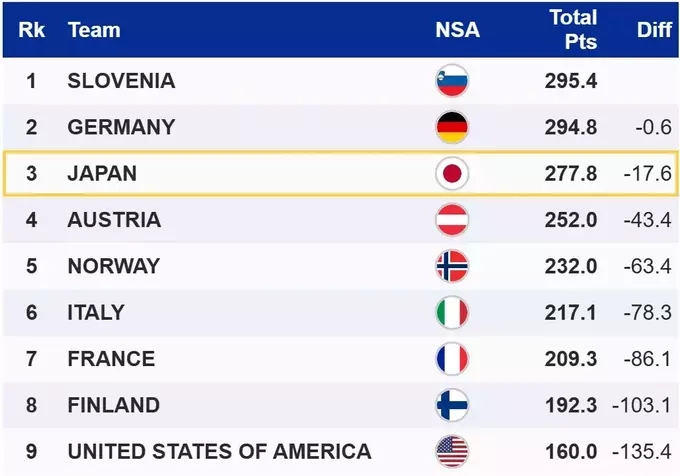 А от сборная Японии (Сара Таканаси, Рен Никайдо, Нозоми Маруяма, Рёю Кобаяси) уступила лидерам 17.6 балла и финишировала третьей.