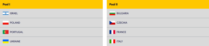 Сине-желтые попали в группу 1, где их соперниками будут Польша (действующие бронзовые призеры), а также сборные Португалии и Израиля.