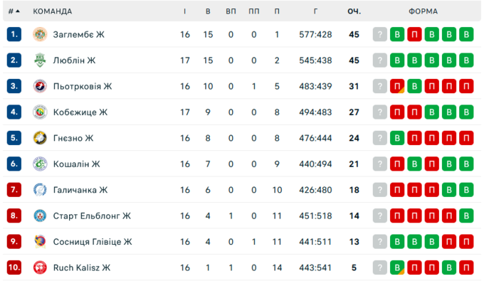 В предыдущем матче польской Суперлиги Галичанка с разницей в 16 мячей проиграла Люблину. Для львовского клуба это поражение стало третьим подряд. В турнирной таблице «Галичанка» занимает седьмое место.
