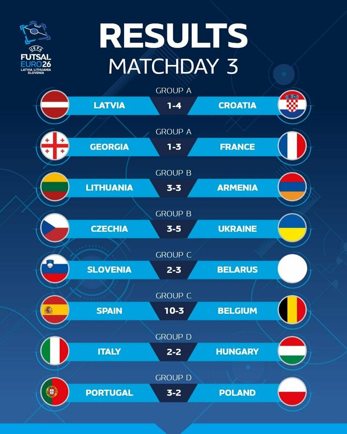 На чемпионате Европы 2026 по футзалу начинается стадия плей-офф.