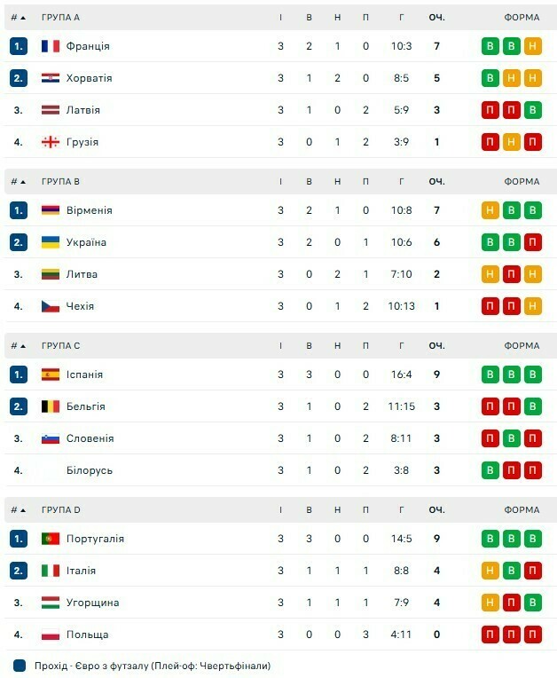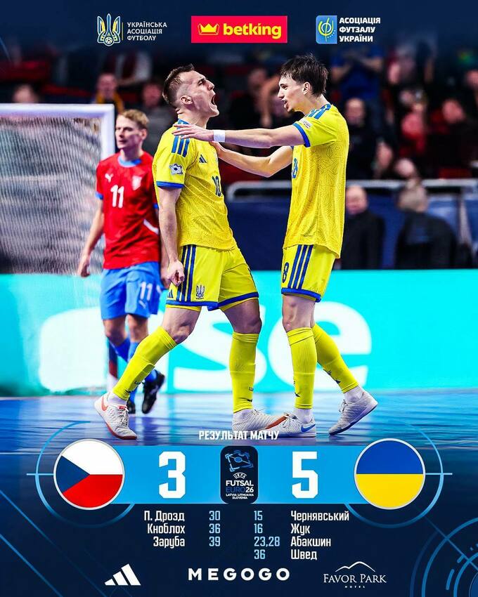 Украинские футзалисты в группе уступили Армении (1:2), после чего одержали победы над Литвой (4:1) и Чехией (5:3), что позволило продолжить борьбу в плей-офф.