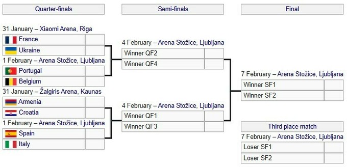 В других четвертьфиналах сыграют: Армения – Хорватия, Португалия – Бельгия, Испания – Италия.