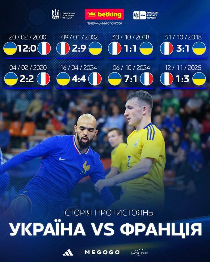 Украина проводит матч 1/4 финала ЧЕ-2026 по футзалу, соперник – Франция