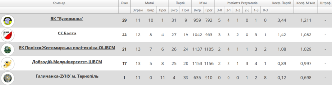 В следующем игровом отрезке четвертая команда турнирной таблицы действовала увереннее и одержала победу в сете, переведя игру на тай-брейк. В решающей партии минимальное преимущество все же сохранили волейболистки «Буковинки».