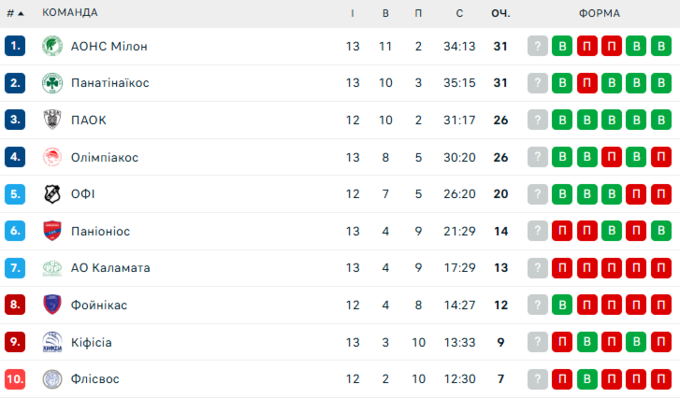Хозяева выиграли три следующие партии и заработали важные три очка, которые позволили «Панатинаикосу» снова возглавить турнирную таблицу вместе с «Милоном» Тимофея Полуяна – обе команды имеют по 31 очку.