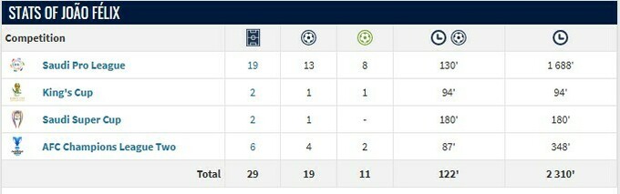 Статистика Жоау Феликса за Аль-Наср в текущем сезоне