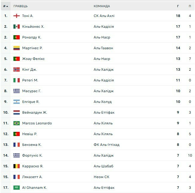 Лучшие бомбардиры сезона чемпионата Саудовской Аравии