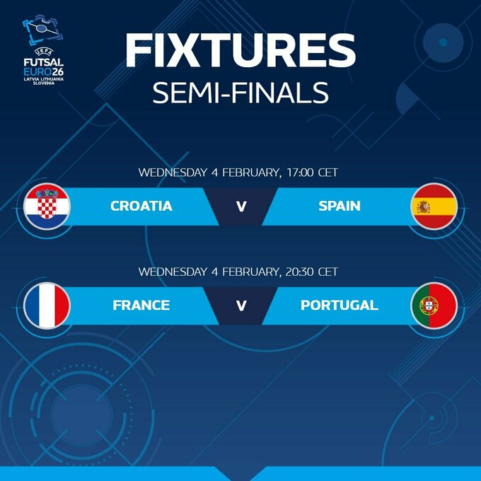 В среду, 4 февраля, в словенской Любляне на «Арене Стожице» пройдут полуфиналы чемпионата Европы 2026 по футзалу.