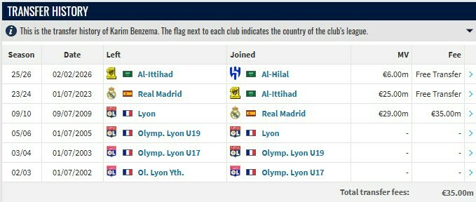Статистика выступлений Бензема за Аль-Иттихад