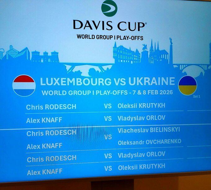 6 февраля состоялась жеребьевка матчевого противостояния Плей-офф Первой Мировой группы Кубка Дэвиса между сборными Украины и Люксембурга.