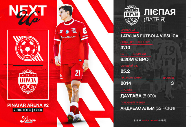 7 февраля в 17:00 встречаются Кривбасс Кривой Рог и команда Лиепая из Латвии.