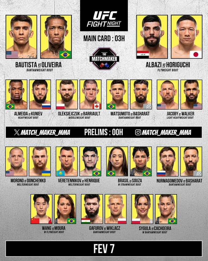 - Марио Батиста (16–3) – Винисиус Оливейра (23–3)