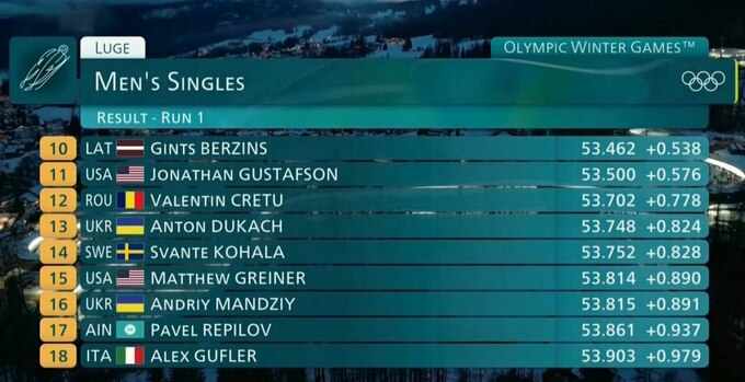 После двух заездов мужских одноместных саней оба представителя Украины находятся в топ-15 общего зачета.