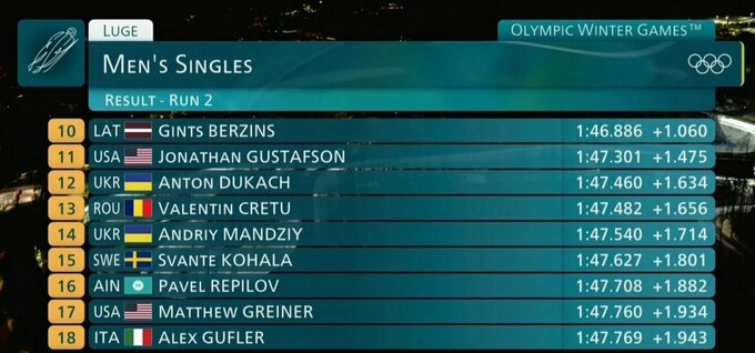Оба украинских саночника улучшили свои результаты по сравнению с первым заездом (где Дукач был 13-м, а Мандзий – 16-м).