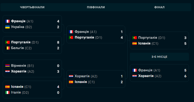 - Испания сумела обыграть Португалию со счетом 5:3. Для Испании эта победа на континентальном первенстве стала восьмой – больше нет ни у кого.